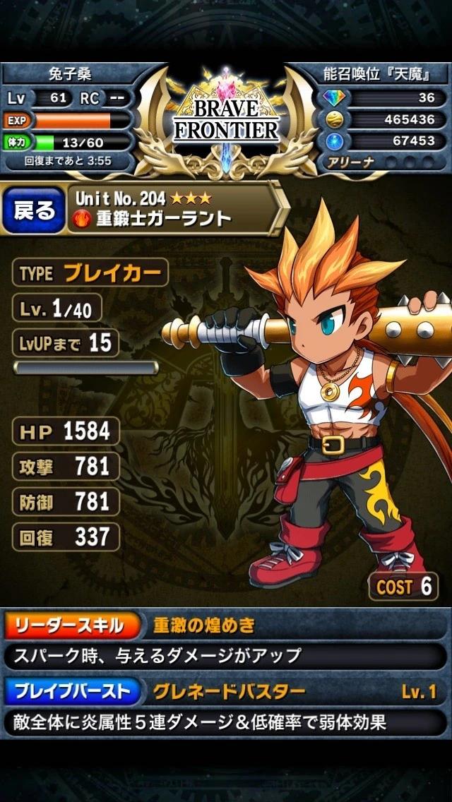 | 属性 | 炎 | cost | 6 | Max_Lv | 40 |